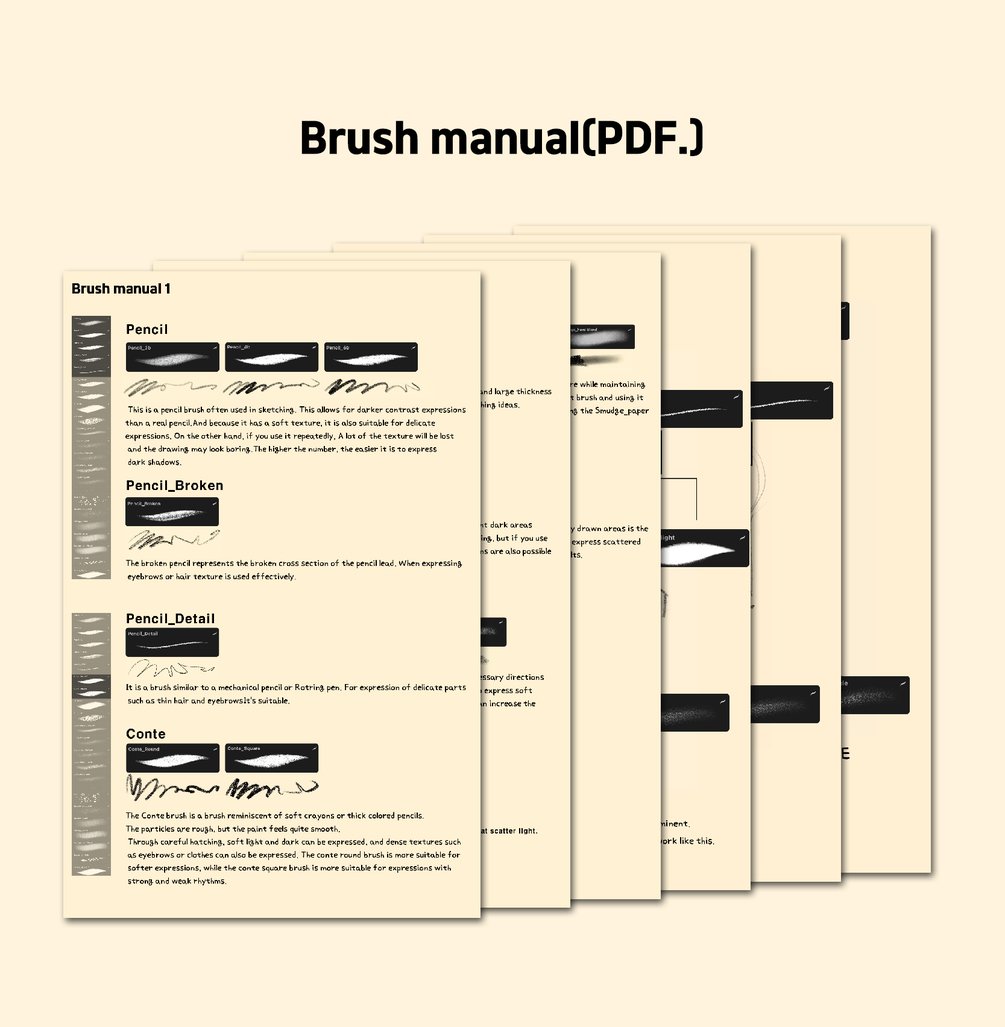 Hello, I am illustrator BrooksKim. I realized that sketching is not just a preliminary step, but a highly valuable independent artistic work. This brush pack is the result of that realization. Purchasing this means you will continue to develop this art together with me.